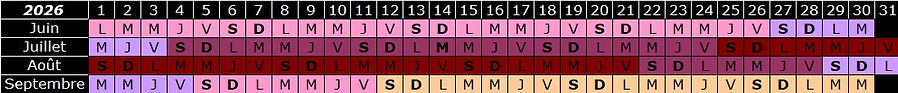 Vacaciones, algunos son-sus duraciones, iniciar el primer día a las 18h y termina el último día a las 10h.